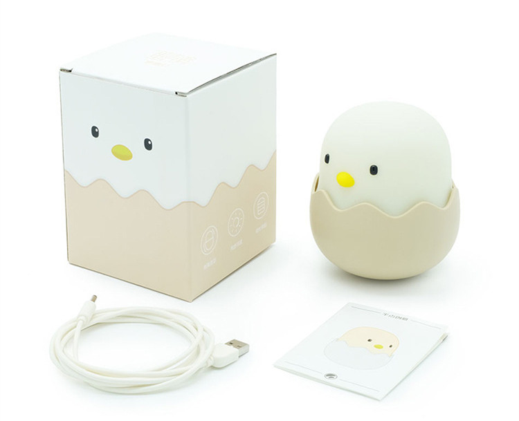 • Warm White Cute Chick Night Light Cartoon Toys Chicken Egg Shell Rechargeable Control Bedroom Lamp Light-up Toys Kids