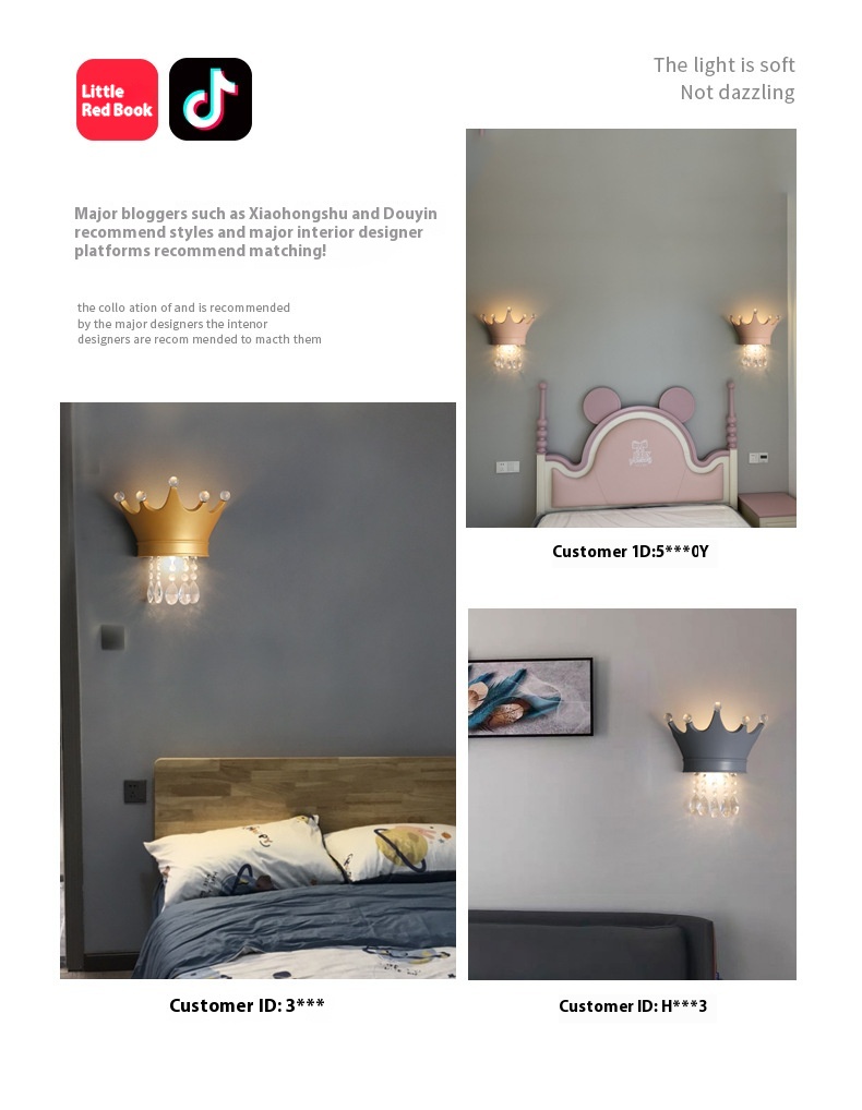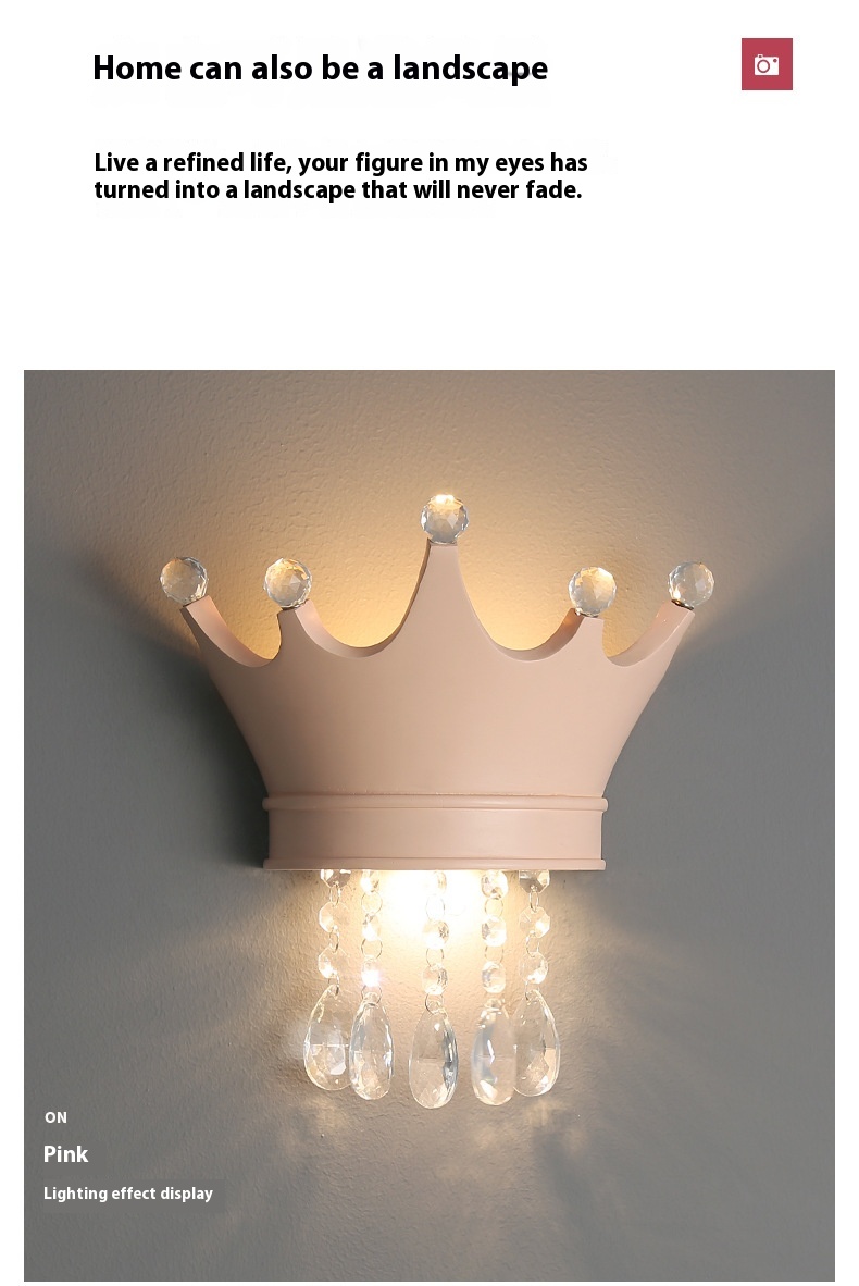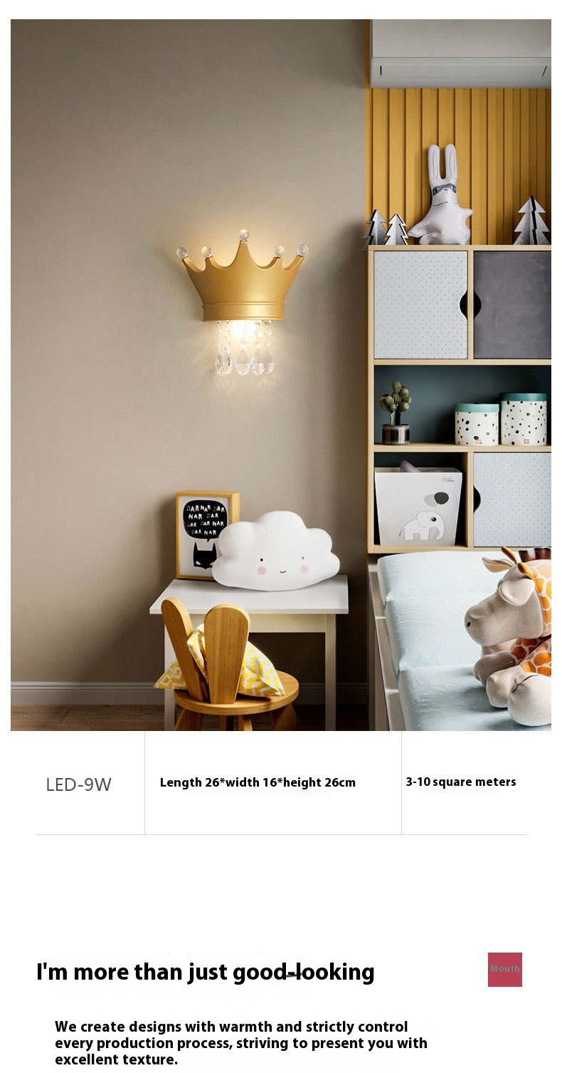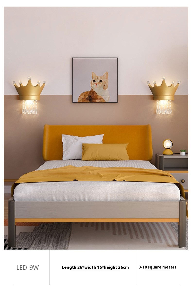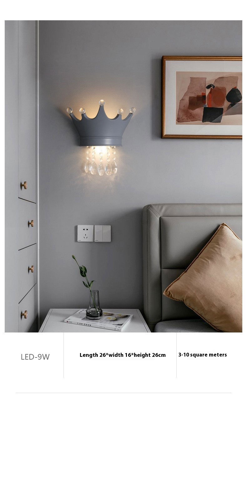 • Crystal Crown Creative Personality Background Bedside Wall Lamp