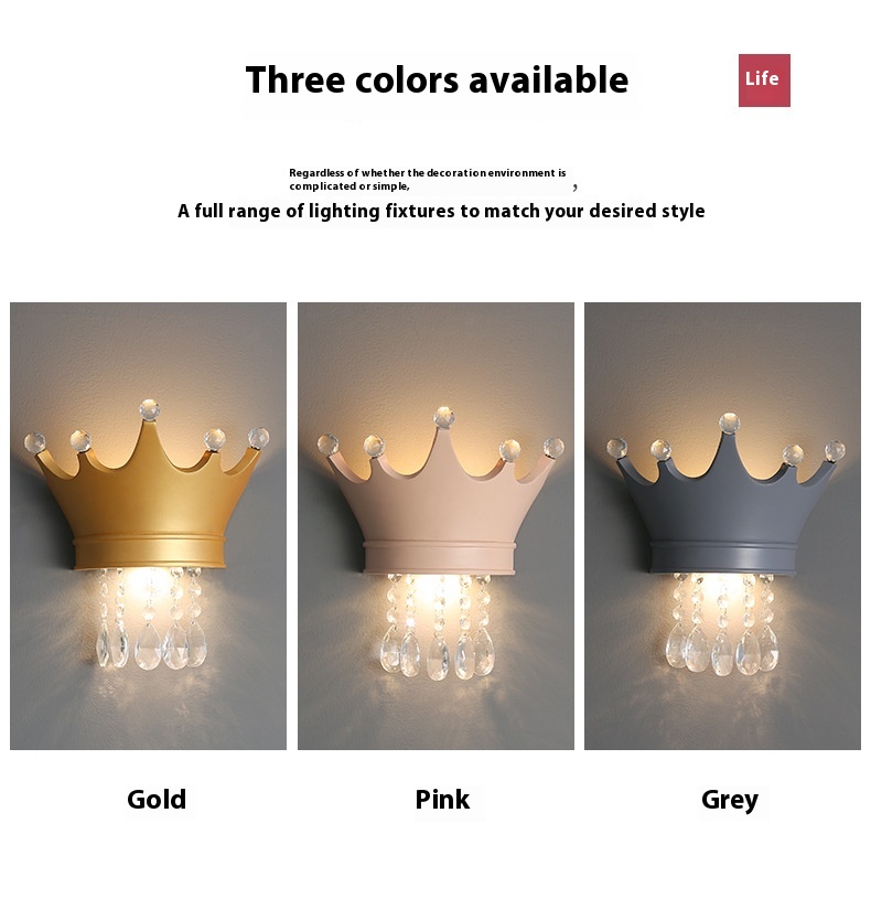 Crystal Crown Creative Personality Background Bedside Wall Lamp